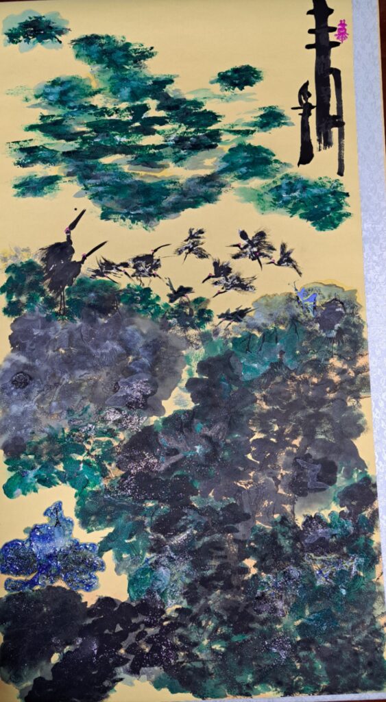 What made it so magnetic? It was a dynamic dialogue between two complementary yet distinct art styles and messages. Professor Yeung’s paintings, vibrant with blues and greens, portrayed environmental awareness (SDG 13) and inner peace (SDG 16), while Song Yang’s iconic “Bad Girl” series challenged gender norms (SDG 5) and spotlighted life underwater (SDG 15). Together, they created an immersive, multifaceted experience that spoke powerfully to global sustainability and equality themes.